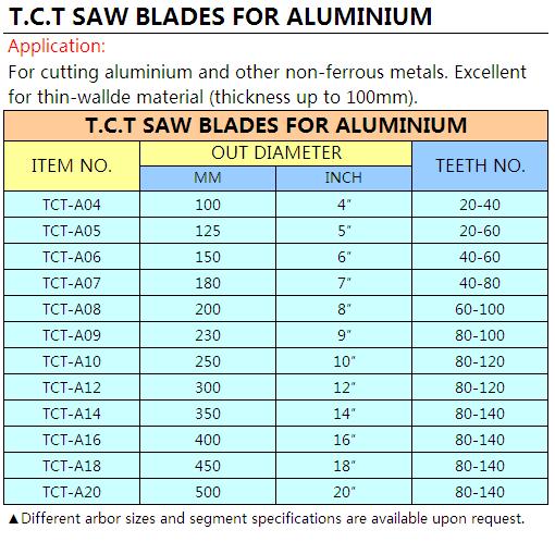T.C.T.SAW BLADES FOR ALUMINIUM